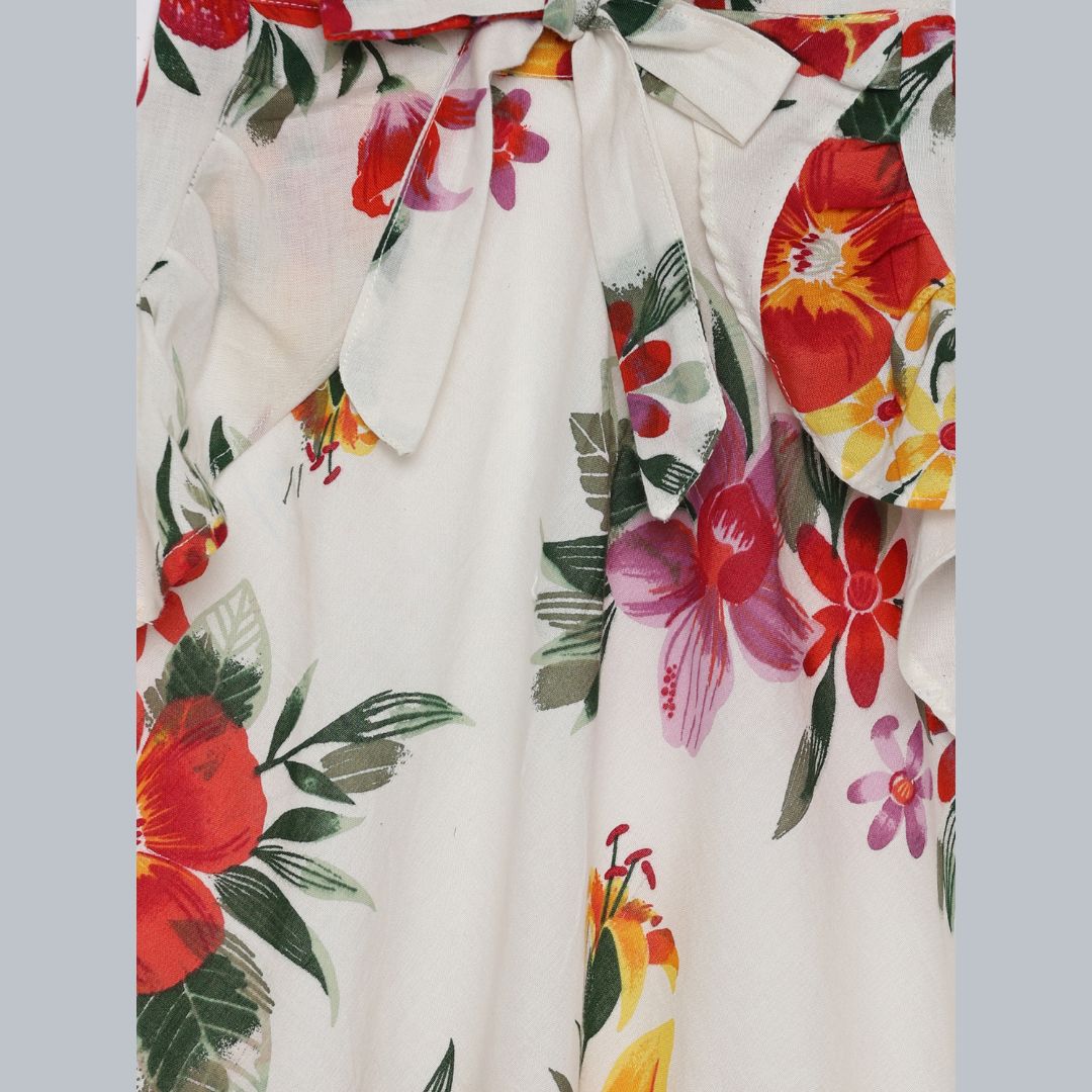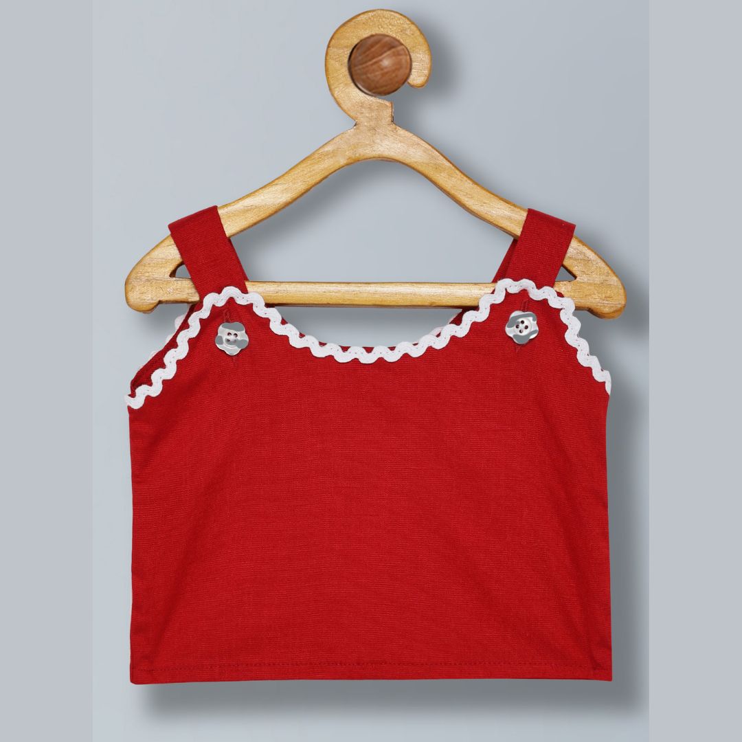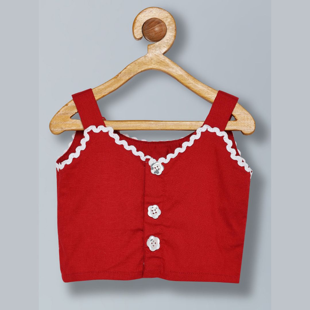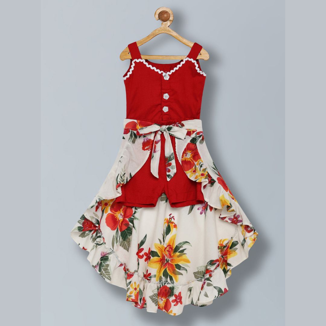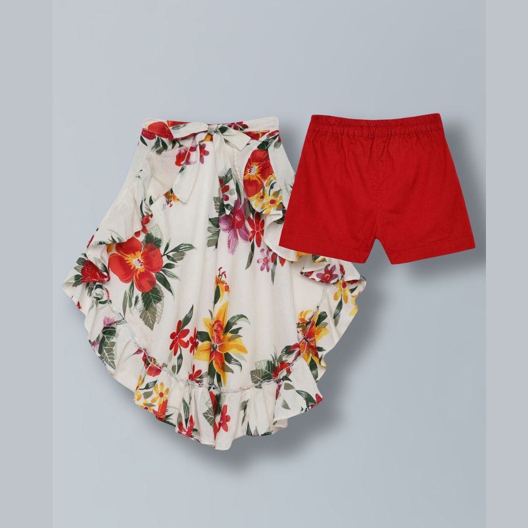 100% cotton 3 piece co-ord set sleeveless top and shorts along with floral wrap skirt -Red & white