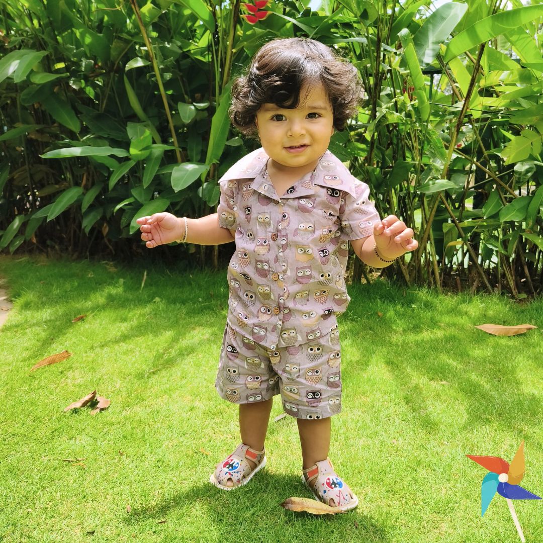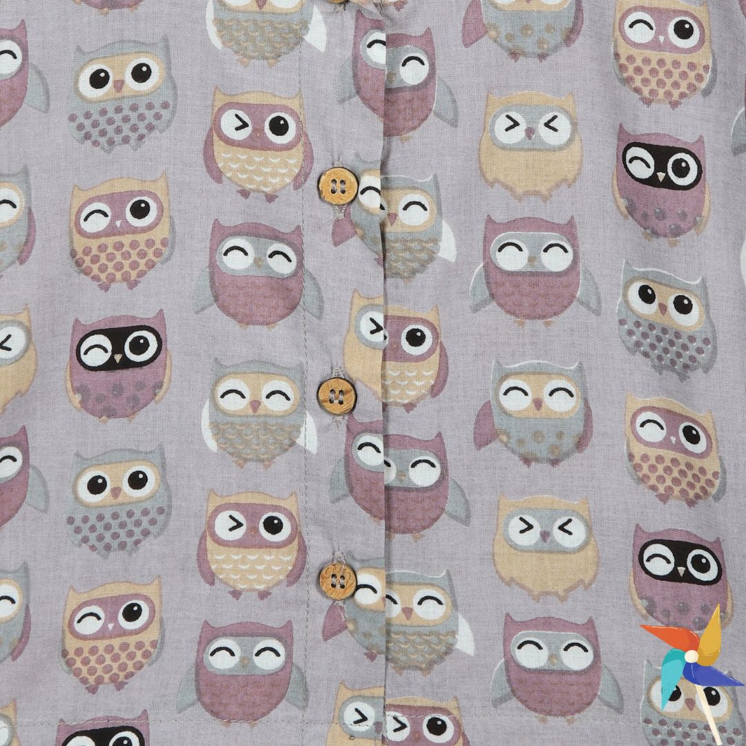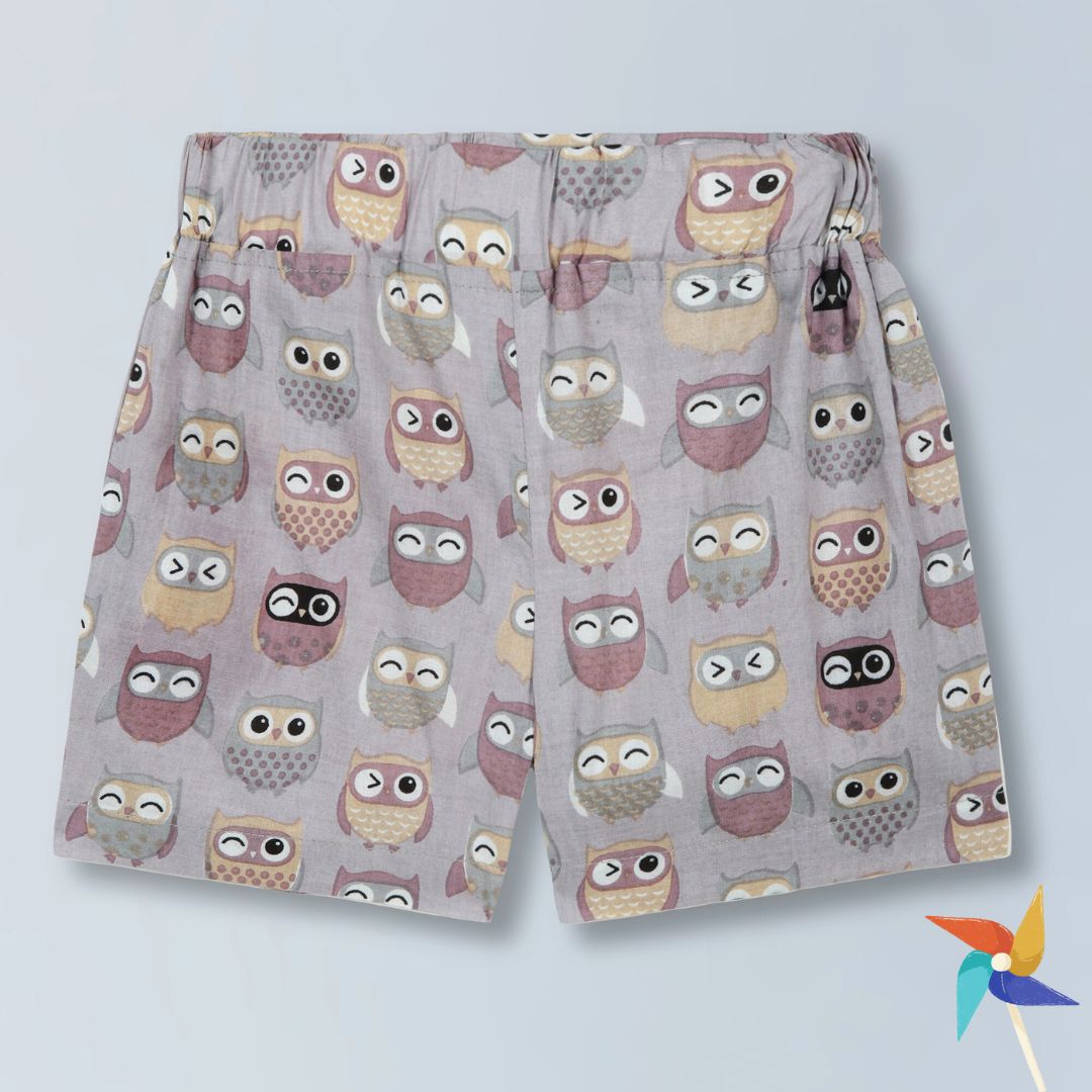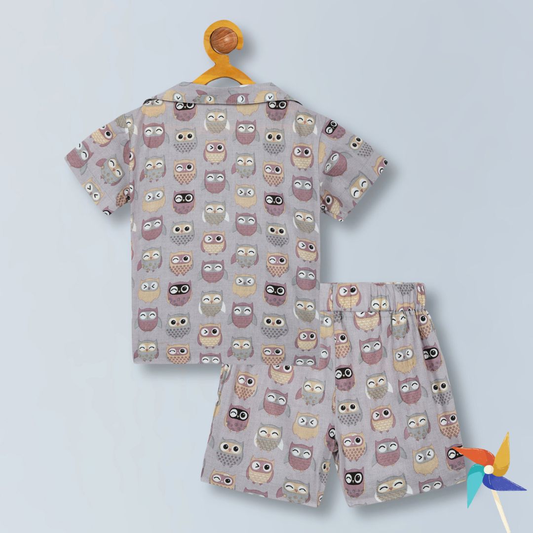 100% Cotton extremely comfortable co-ord set Shirt and Shorts - Boys Grey Owl Print