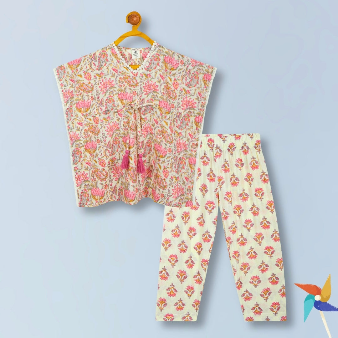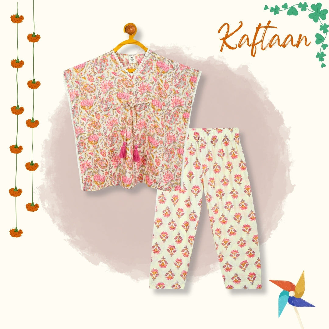100% Cotton Kaftan Set with Pants- Floral Print (Sibling collection)