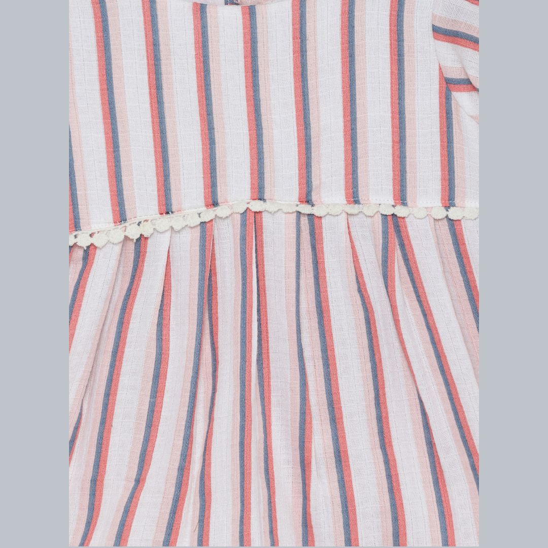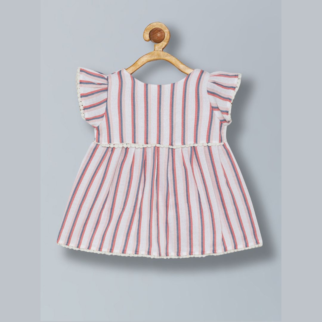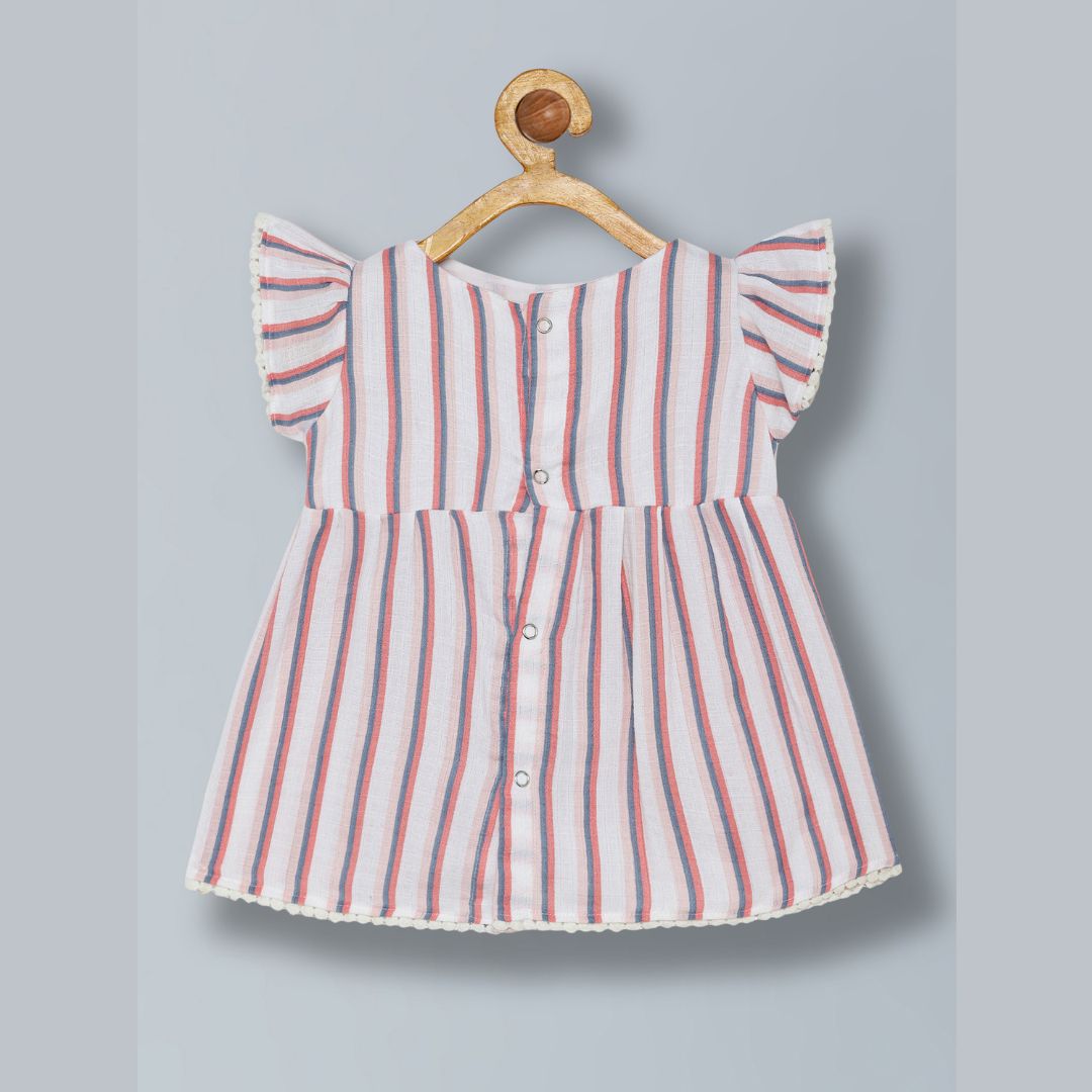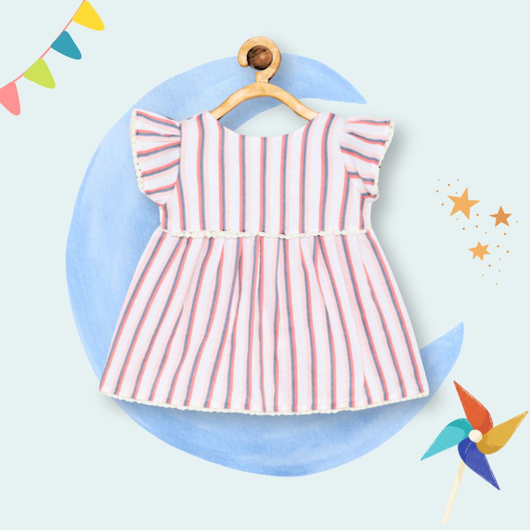 100% cotton muslin jhabla frock back open with soft lace and striped print- white