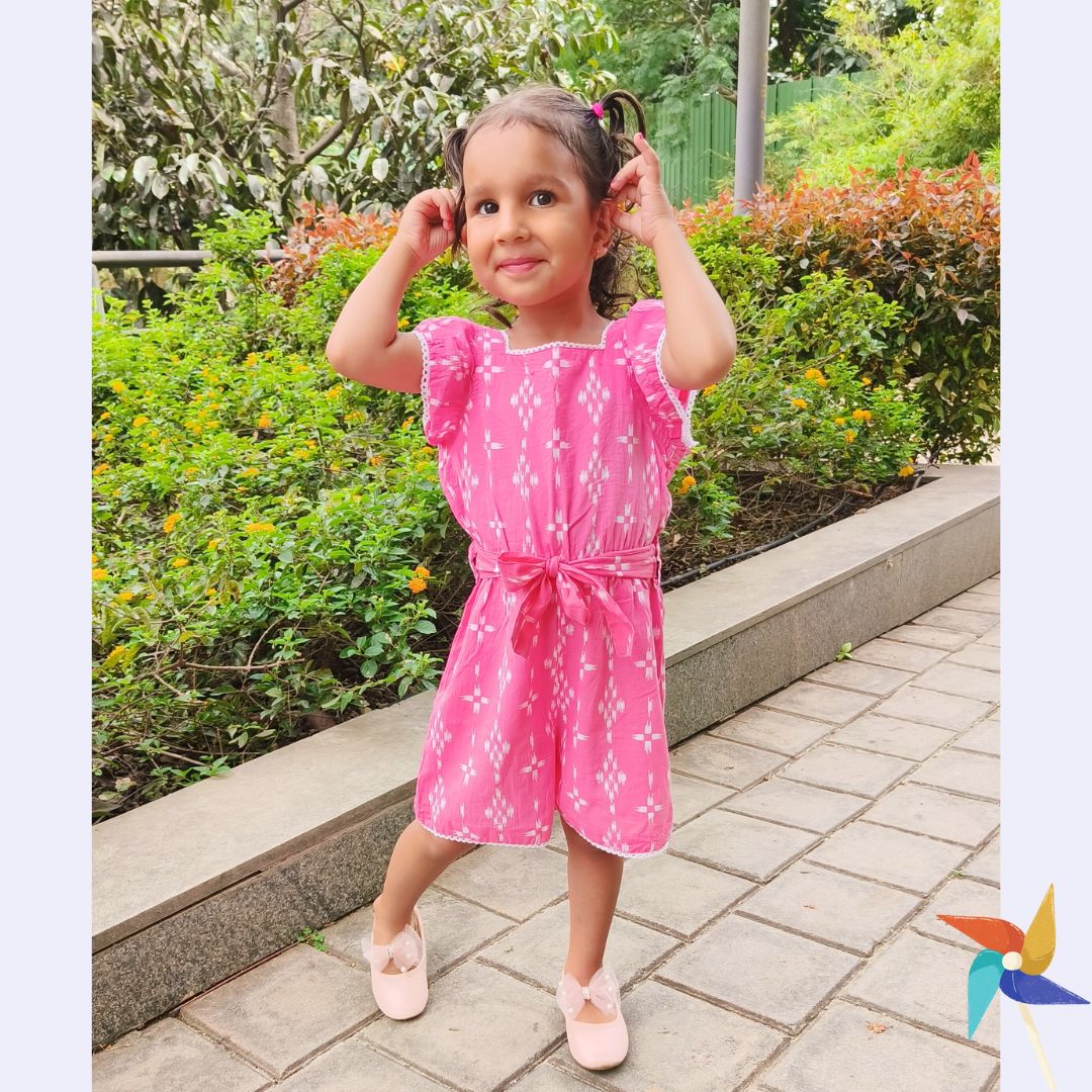 Got a girl who wants to look her best all day long? This pink jumpsuit, made of 100% breathable cotton, is the perfect pick! With flared sleeves and adjustable belt for a flexible fit, it's the ultimate quirky and fun outfit for your playful little fashionista.