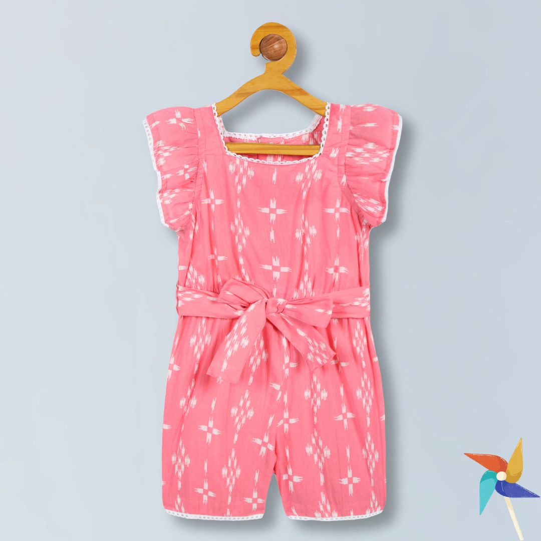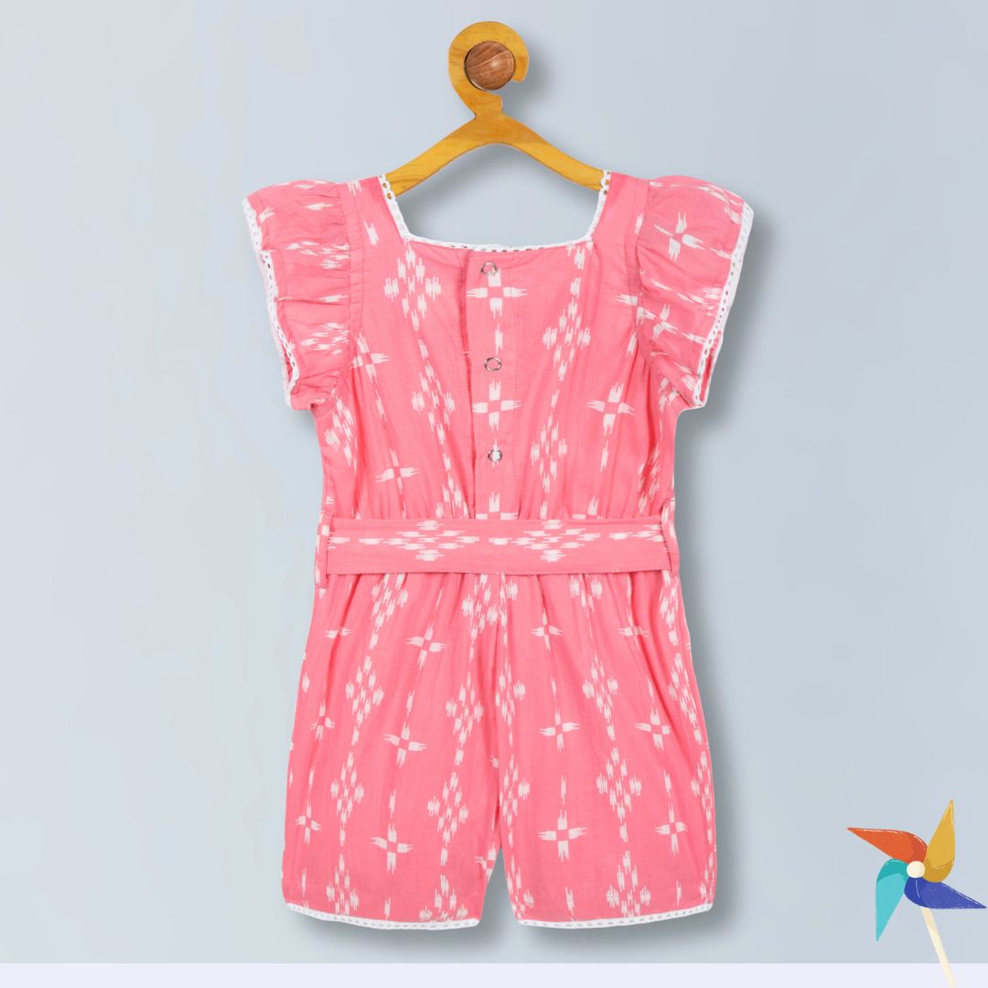 100% Cotton Sleeveless Short Jumpsuit - Pink