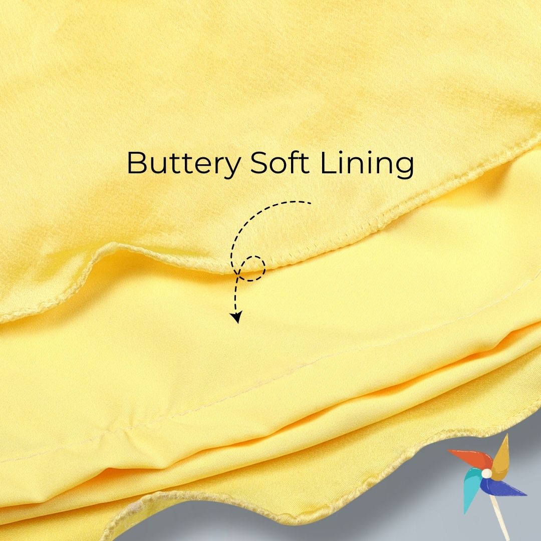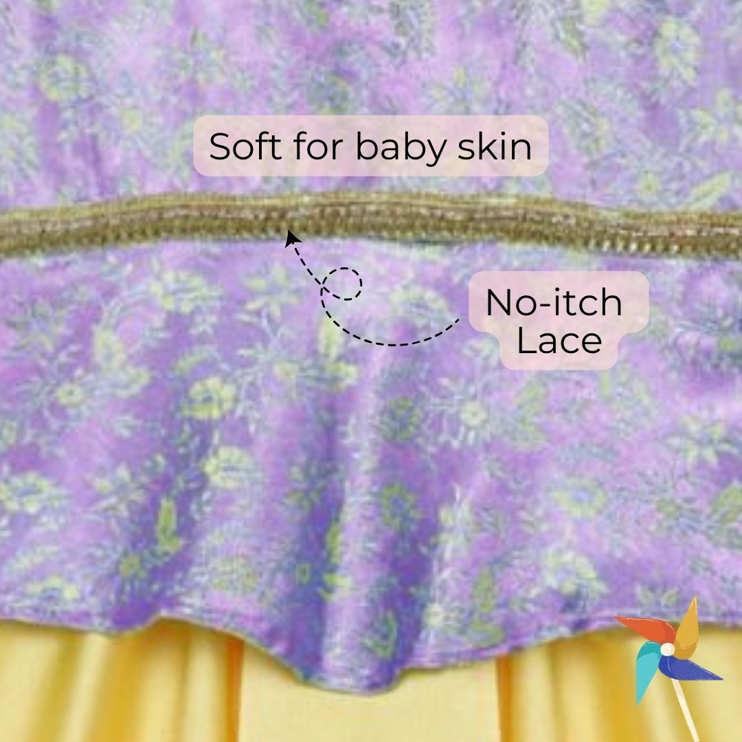 No more slipping and sliding from waist for your little diva with our 'No Slip Lehenga'! Made with silky satin material, buttery soft lining and soft lace to prevent itching, this satin lehenga is suitable for babies up to 1 year. Your little one will look adorable in this green and yellow outfit. (Please note: choli is attached to lehenga.)
