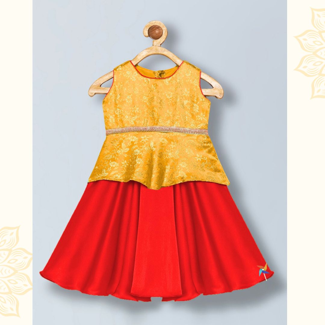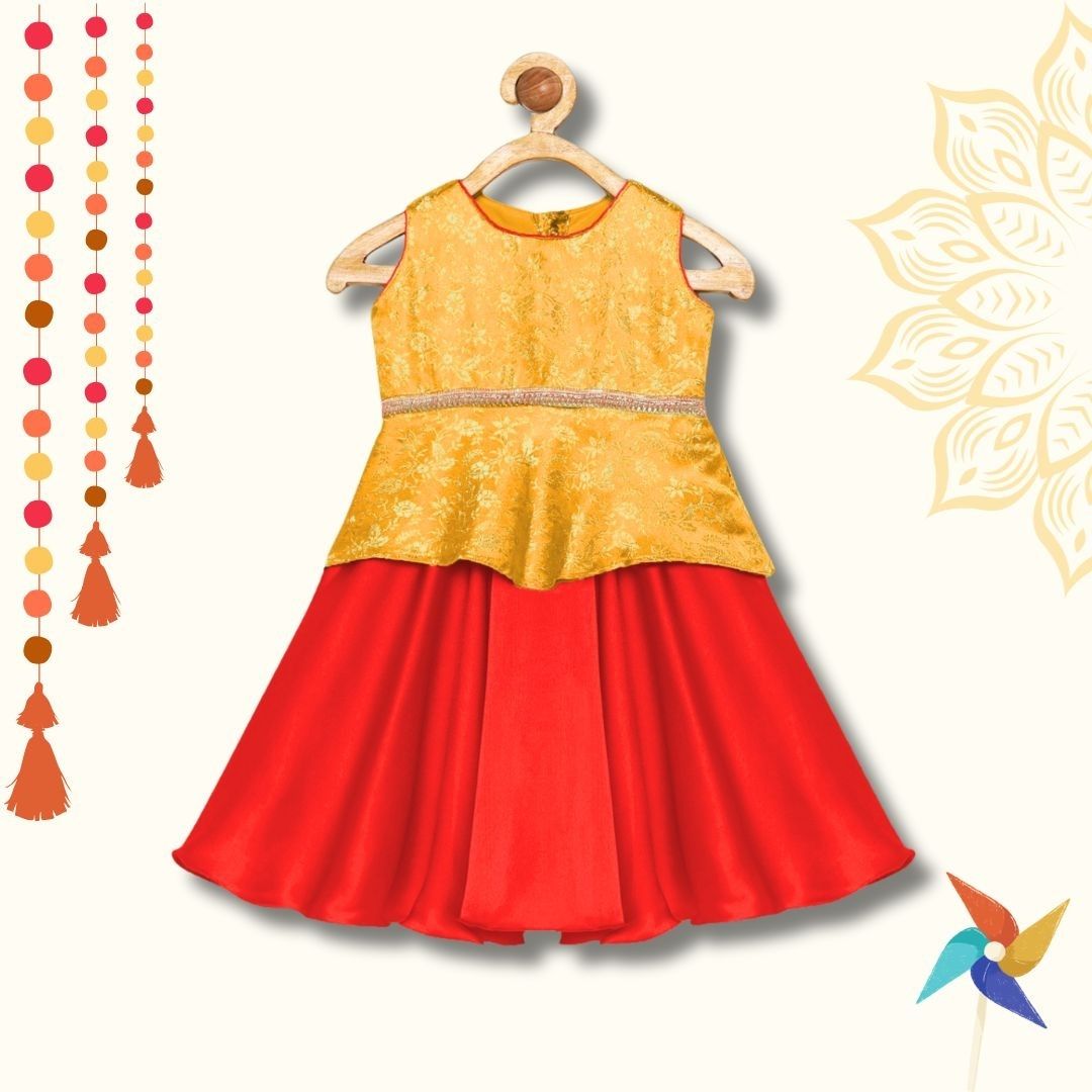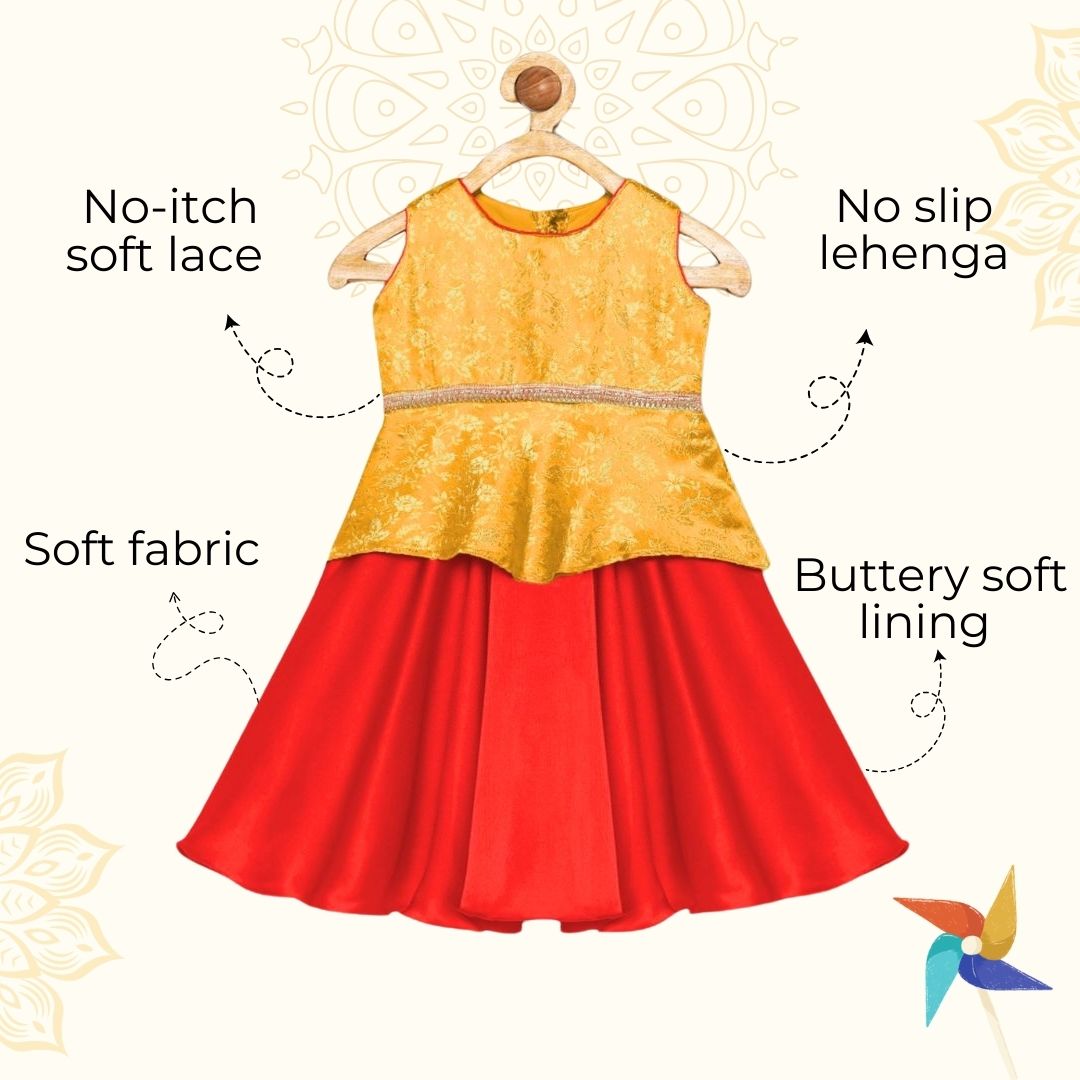 Lehenga choli for baby - Red & Yellow